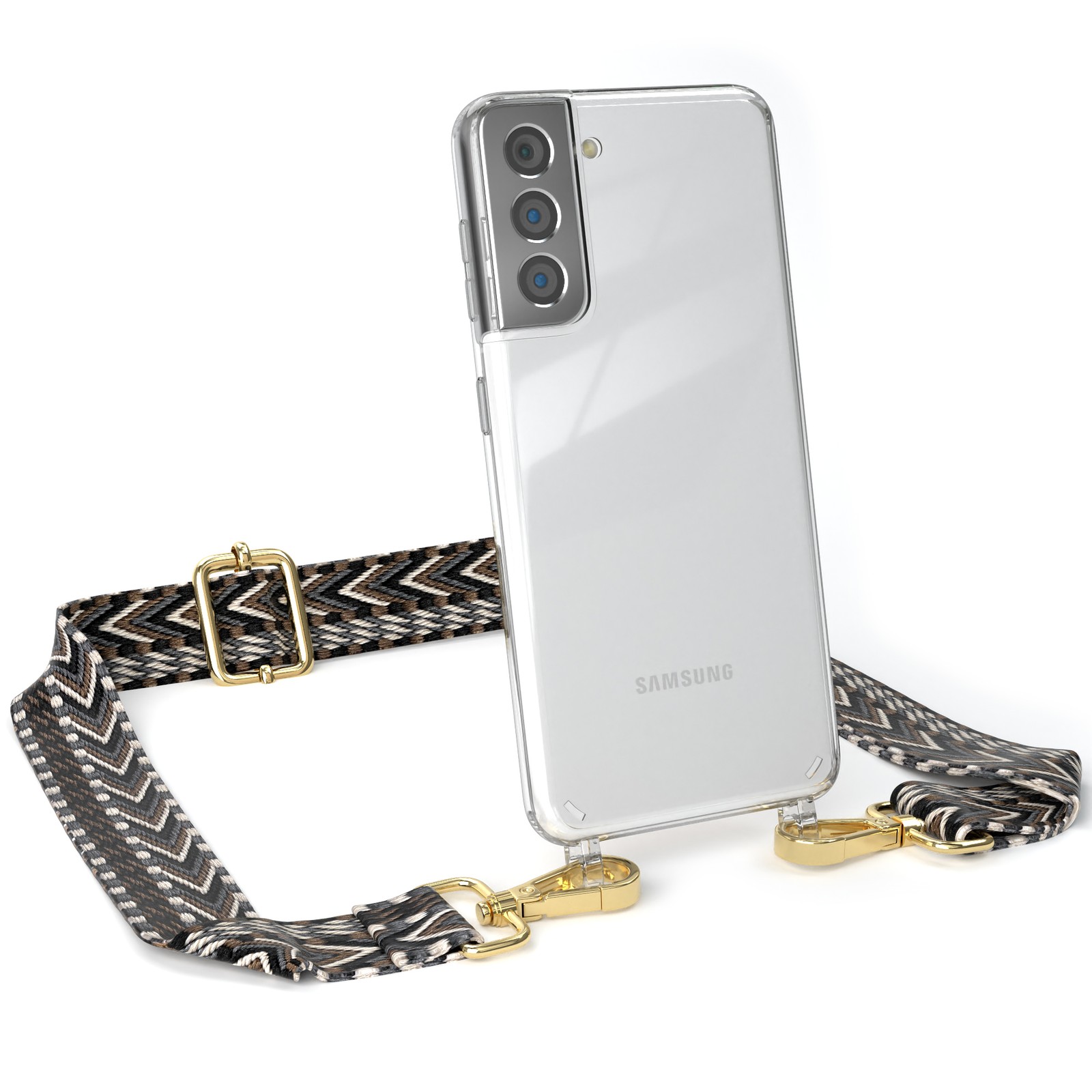 Handykette für Samsung Galaxy S21 5G Boho Schnur Hülle Band breit Grau / Schwarz