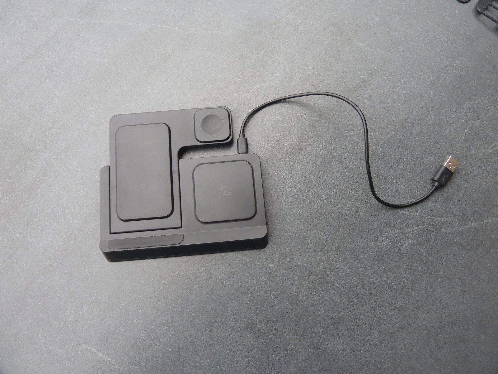Diese innovative 4-in-1-Schnellladestation bietet kabellose Freiheit für Ihre mobilen Geräte. Sie ist kompatibel mit einer Vielzahl von Modellen und besticht durch ihre elegante schwarze Farbgebung, die sich nahtlos in jeden Schreibtisch integrieren lässt. Hergestellt aus robustem Kunststoff, garantiert diese Ladestation Langlebigkeit und Effizienz beim Aufladen Ihrer Geräte. Mit ihrer universellen Einsatzmöglichkeit und der simplen Handhabung ist sie das ideale Accessoire für jeden, der Wert auf eine schnelle und bequeme Ladung legt. Kurzes Kabel zum Einstecken am Laptop oder sonstwo ist dabei.