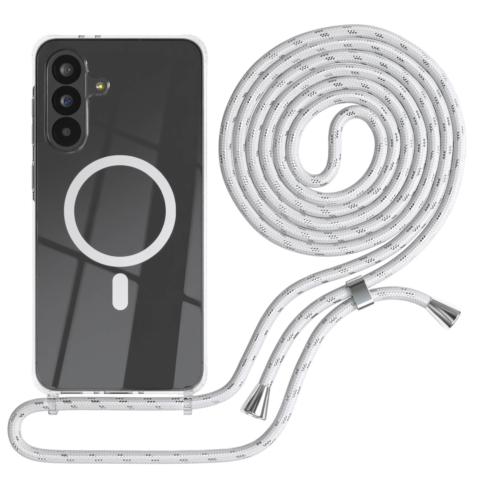 MagSafe TPU Handykette für Samsung Galaxy A56 Hülle mit Band Kette Weiß / Silber