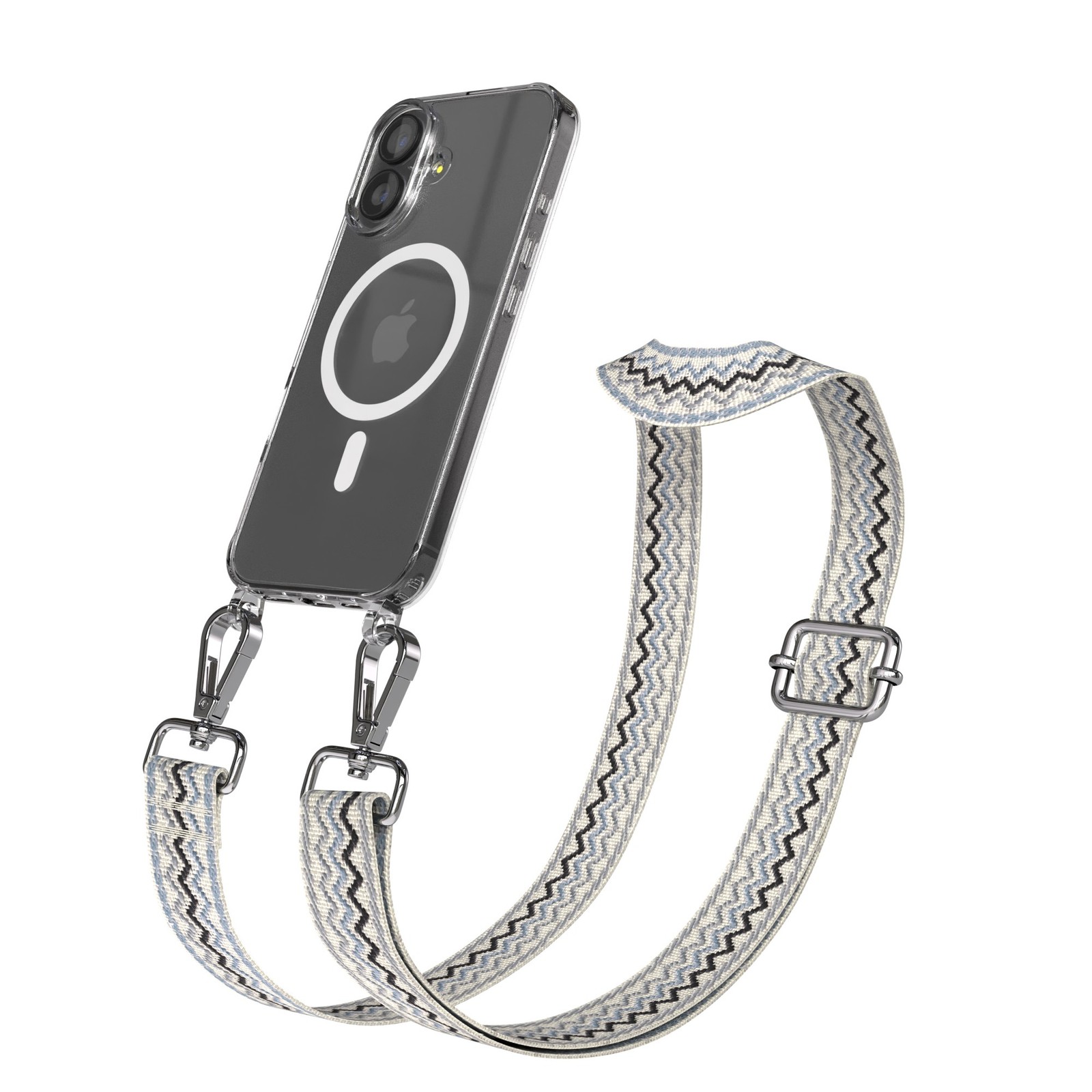 MagSafe Handyhülle mit Band für Apple iPhone 17 Umhängekette Blau Wellen -Silber