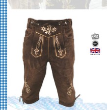 Featuring decorative embroidery with high quality stitching and Bone button details, these lederhosen are cut to a perfect fit and fully lined. Top Quality Cowhide Suede Leather. Material Information : 100% cowhide suede Leather, Lining: 100% Polyester.