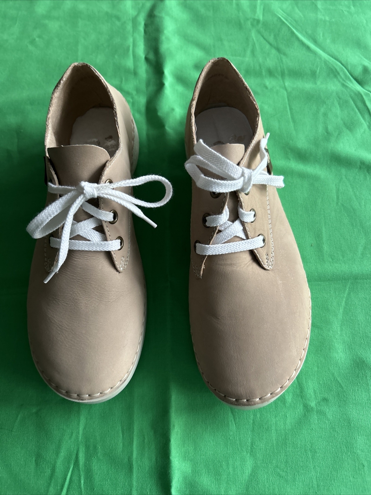Diese gebrauchten RIEKER Antistress Halbschuhe für Damen in Größe 38 sind aus hochwertigem Leder gefertigt und in einem schönen hellbraunen Farbton gehalten. Mit ihrem Bindeverschluss bieten sie eine perfekte Passform und sind somit ideal für den täglichen Gebrauch geeignet. Die runde Schuhspitze und die Gummisohle garantieren hohen Tragekomfort und Langlebigkeit. Besonders im Frühling, Sommer und Herbst sind diese flachen Schuhe ein echter Hingucker und lassen sich vielseitig kombinieren. Bilder sind Bestandteil der Artikelbeschreibung Privatverkauf, keine Rücknahme sowie Gewährleistung