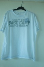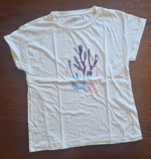 Wenig getragenes, luftiges T-Shirt mit Aufdruck und kleine Knopfleiste am Rücken. Länge ca. 66 cm. Von Achsel zu Achsel 56cm.