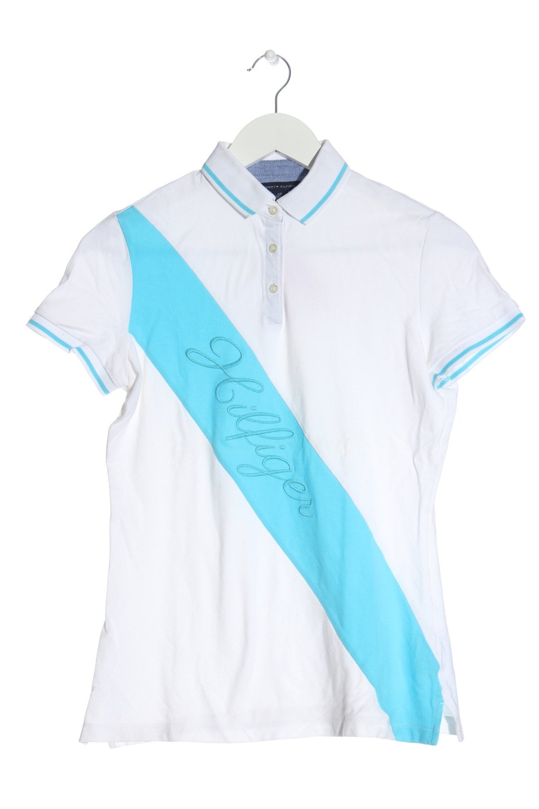 TOMMY HILFIGER Polo-Shirt Damen Shirt Gr. DE 36 weiß-blau Casual-Look