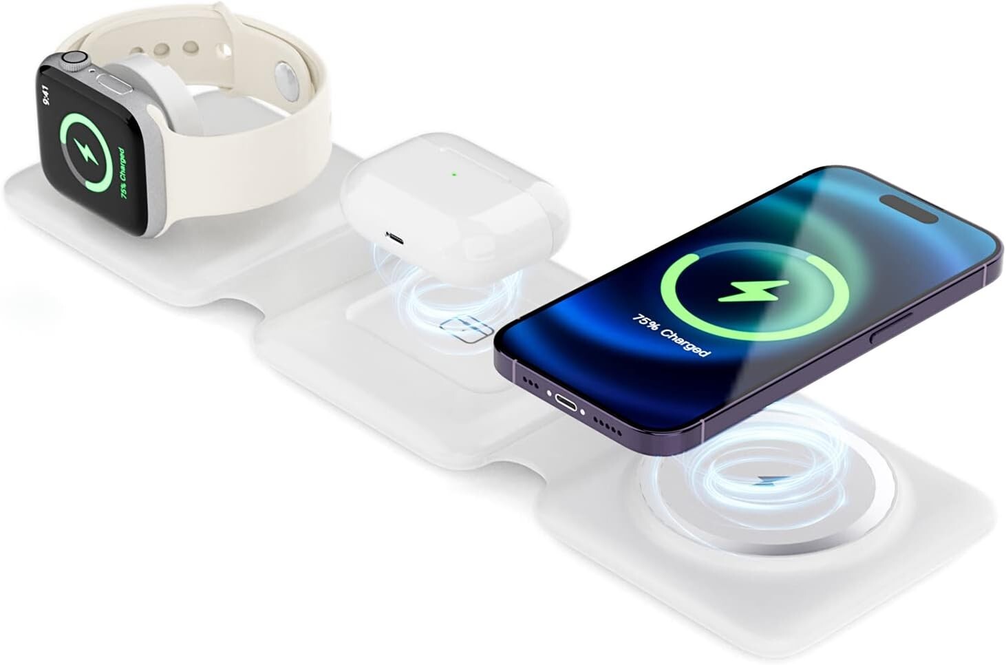 Außerdem verfügt er über einen Überstromschutz, Überladeschutz, Überhitzungsschutz und Überspannungsschutz. Diese magnetische Ladestation ist kompatibel mit AirPods 2/3/Pro/Pro2 (mit drahtloser Ladehülle), Apple Watch Series 2/3/4/5/SE/6/7/8, iPhone 16/16pro/max/15/15pro/max/14/14 Plus/14 Pro/14 Pro Max/13/13 Pro/13 Pro Max/13 Mini/12 Pro/12 Pro/12 Pro Max/12 mini und Samsung S21/S20/Note 10/Note 10 Plus/Note9/Note 8/Note 7/Mate 30 Pro/Mate 30/Mate 20/Mate 20 Pro/Pixel4XL/Pixel4/Pixel3XL/Pixel3.
