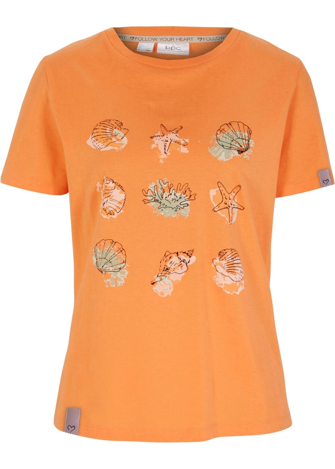 Farbe: Softorange Bedruckt. Ausschnitt: Rundhals. Baumwoll-T-Shirt mit Druck. Mode muss nicht teuer sein! T-Shirt mit Druck aus Baumwolle. Material: 100% Baumwolle. Besonderes Material: 100% Baumwolle.