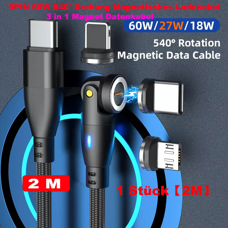 9PIN PD60W 3 in 1 Magnet Datenkabel Ladekabel, 360°&180° Magnetisches, Schnell