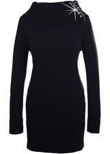 Long-Pullover mit originellem Rollkragen Gr 48/50 Schwarz Damen Strick-Pulli Neu