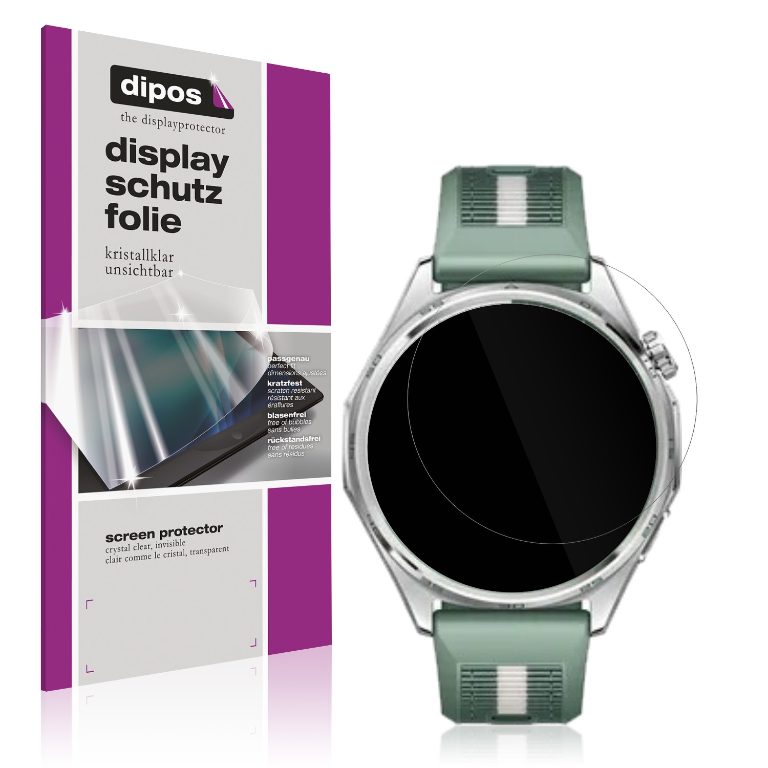 Die dipos Crystalclear Schutzfolie ist mit nur ca. 0,12 mm extrem dünn und unsichtbar, bewahrt das ursprüngliche Design und die Haptik deines Huawei Watch GT6 46mm. Suchst du nach einer echten Alternative zu klobigen, schweren Schutzgläsern?.