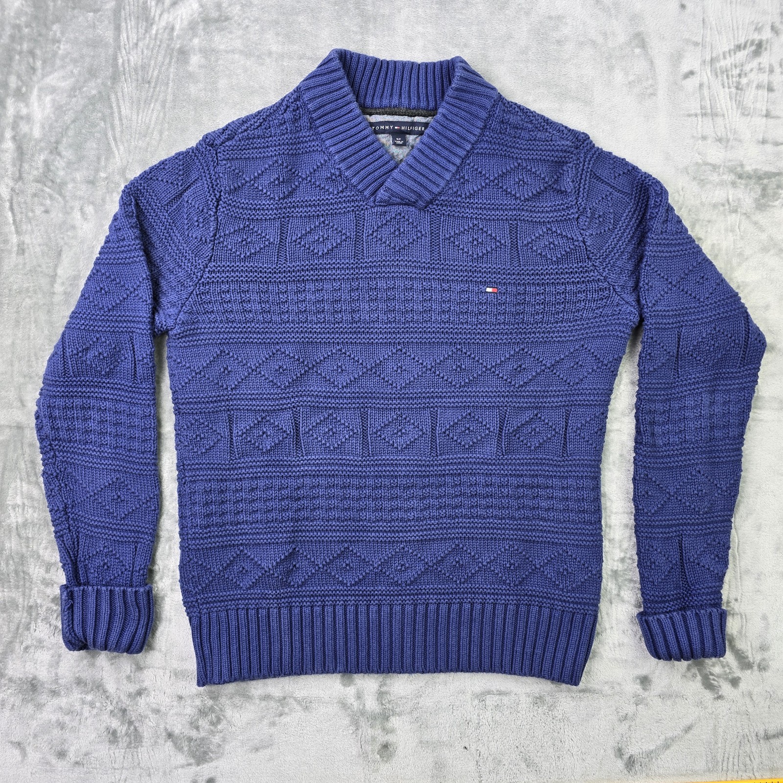 Tommy Hilfiger Herren Pullover Zopfmuster V-Ausschnitt S royalblau 100% Baumwolle