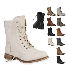 Damen Schnürstiefeletten Profil Sohle Stiefeletten Lederoptik 893192 Mode