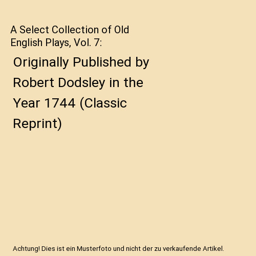 A Select Collection of Old English Plays, Vol. 7: Originally Published by Robert