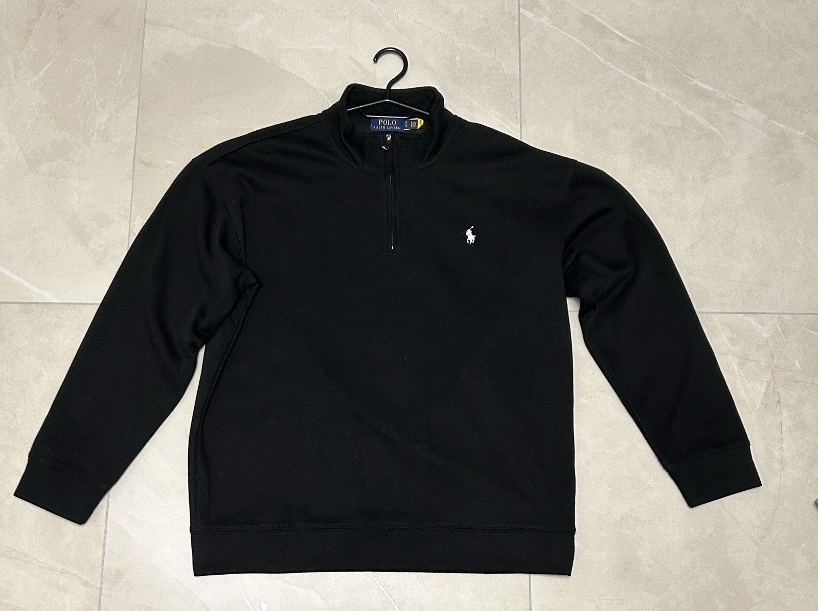 Zum Verkauf steht ein Polo Ralph Lauren Herren Half-Zip Pullover in klassischem Schwarz. Der Pullover verfügt über einen kurzen Reißverschluss am Kragen (Quarter Zip) sowie das ikonische Ralph Lauren Pony Logo auf der Brust. Zeitloser, sportlich-eleganter Stil ideal für Alltag, Freizeit oder Business Casual.