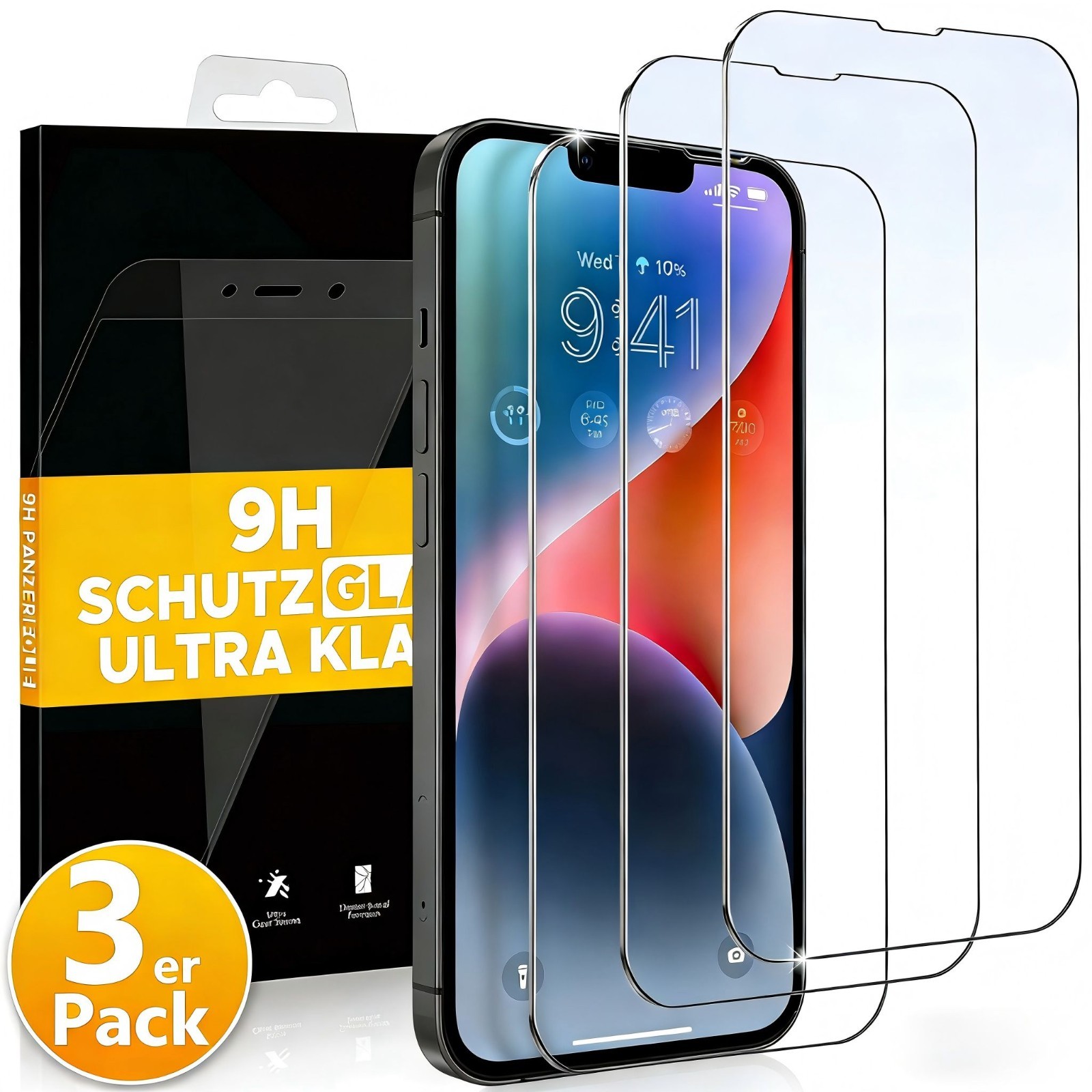 Displayschutz Glas Folie Ultra-Dünn für iPhone 16 15 14 13 12 Pro Max 3er pack