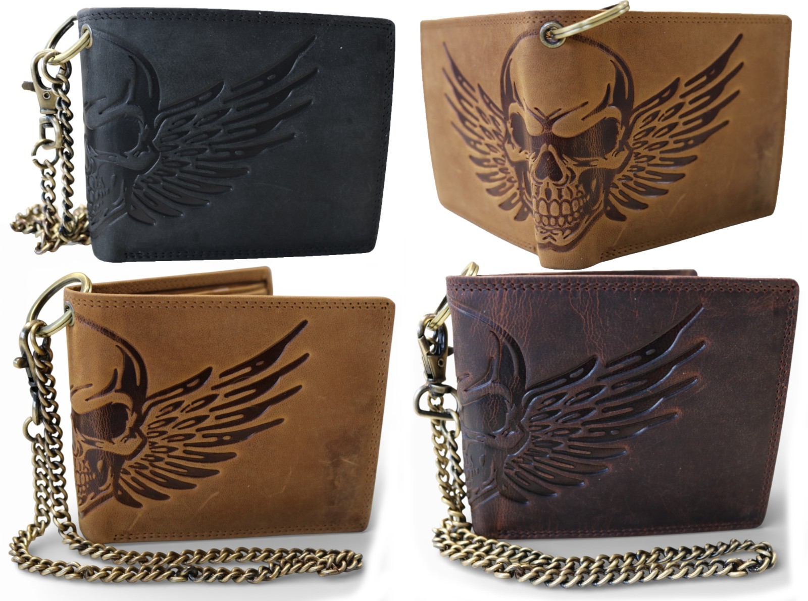 Ein integrierterRFID-Schutz schützt Kredit- und EC-Karten vor unbefugtem elektronischem Auslesen und Datendiebstahl. Diese hochwertigeBiker-Geldbörse aus echtem Leder kombiniert ein markantes Design mit praktischer Funktionalität.