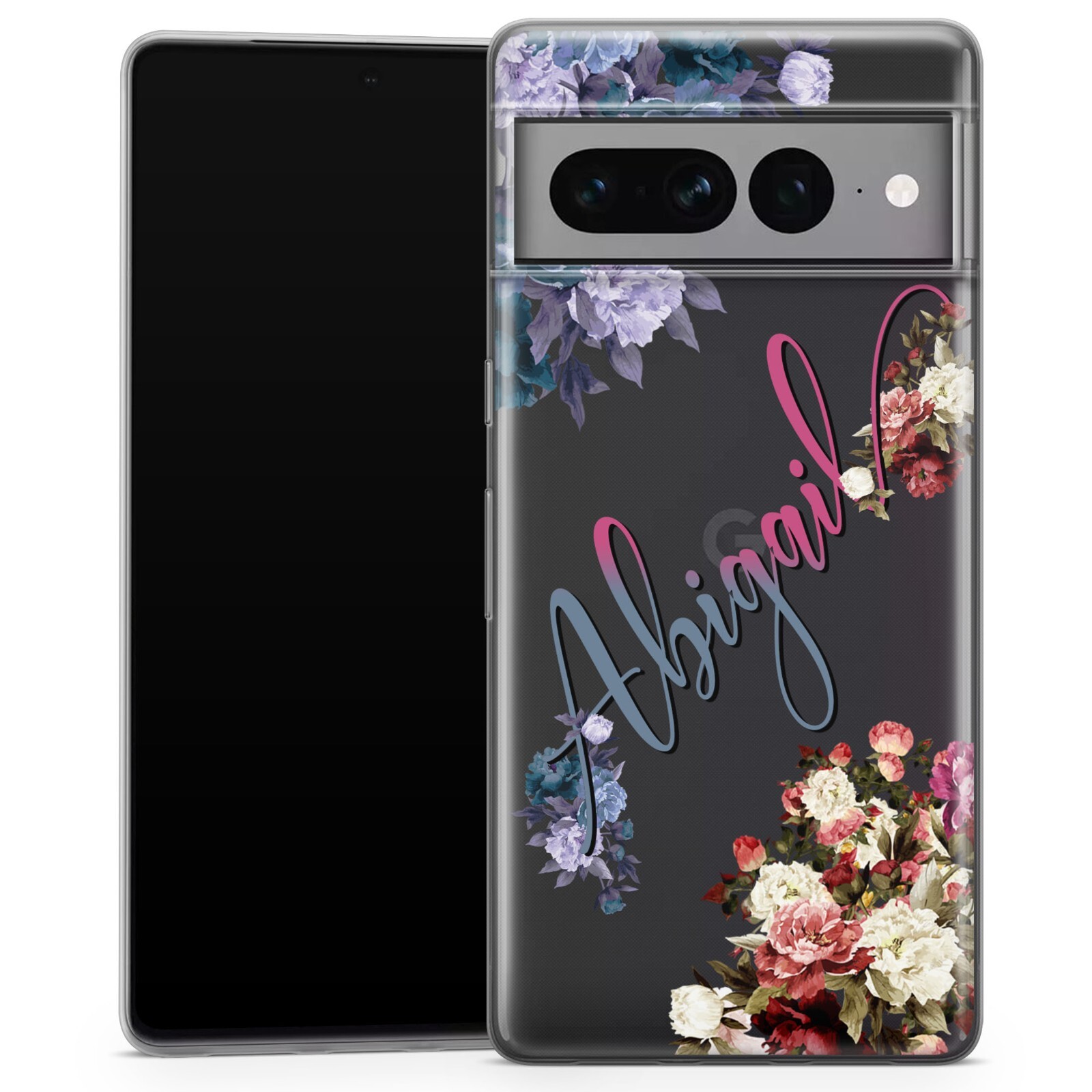 Personalisierte Gel-Handyhülle Namen initial&heart Blumenmuster für Google Pixel