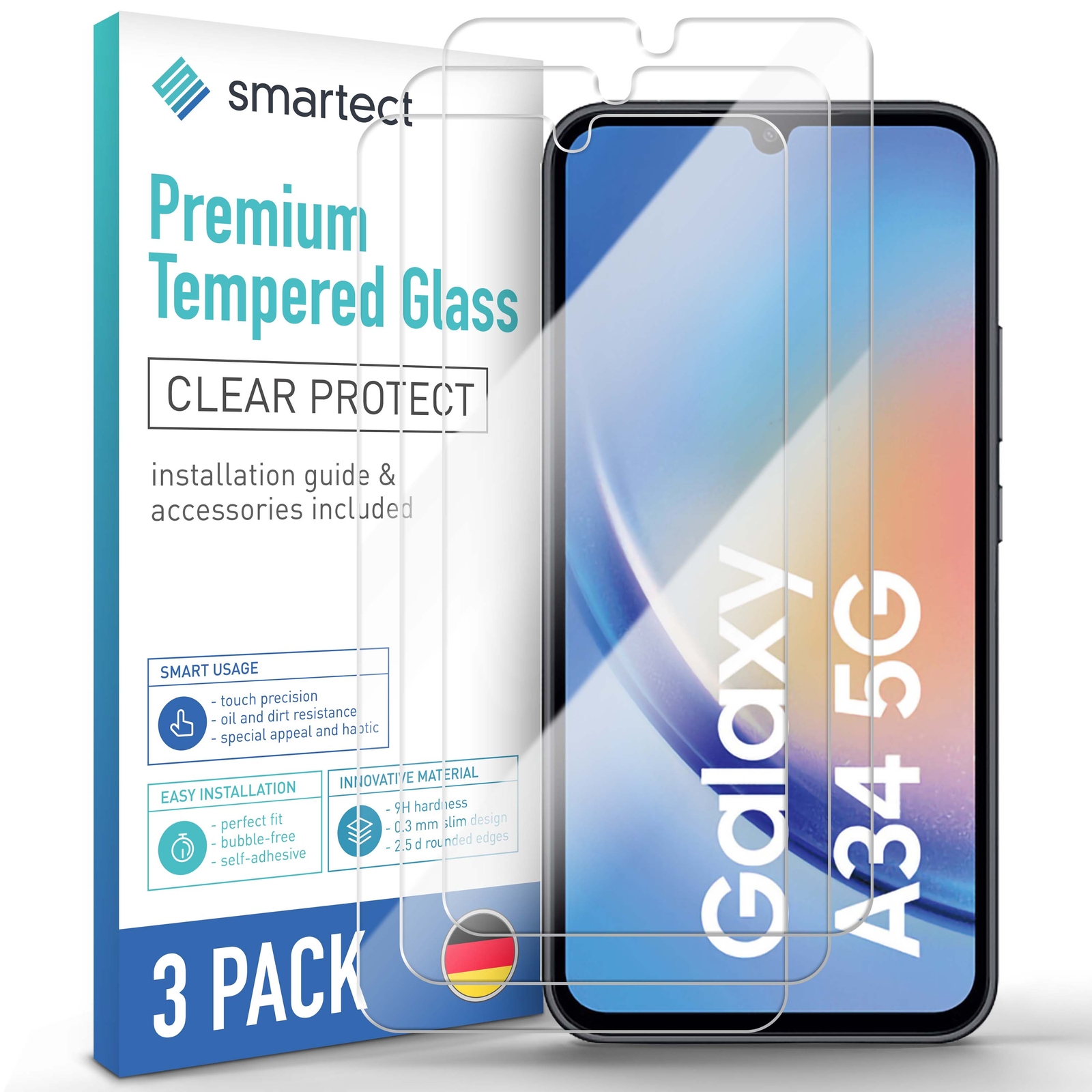 Clear Protect Schutzglas: Unser Schutzglas mit klarem Glas bietet zuverlässigen Schutz, ohne die Sichtqualität auf Ihrem Display zu beeinträchtigen. Schutz vor Bruch und Kratzern: Das Schutzglas besteht aus japanischem Asahi Tempered Glass mit 9H Härtegrad.