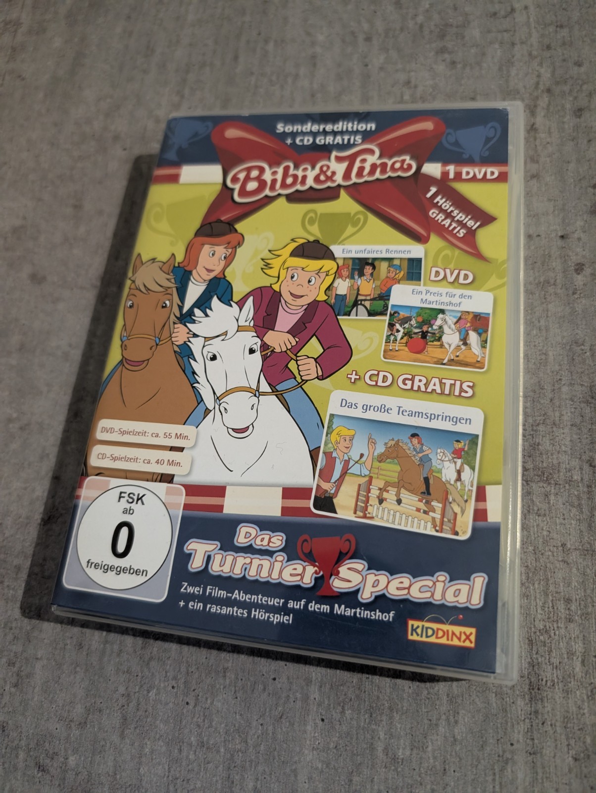Tauchen Sie ein in die abenteuerliche Welt von "Bibi und Tina" mit dieser exklusiven DVD- und CD-Box. Das Turnier Special, ideal für die ganze Familie, bietet Unterhaltung für Kinder und Erwachsene gleichermaßen. Die Box enthält eine Audio-CD, die das Hörerlebnis noch bereichert und lädt zu einem interaktiven Erlebnis ein. Diese Sammlung, mit einer FSK-Einstufung von 0, ist perfekt für Fans aller Altersklassen und zeichnet sich durch die qualitativ hochwertige Produktion von Kiddinx Studios aus. Mit dem Regionalcode 2 ist die DVD in Europa, Japan und dem Nahen Osten abspielbar, und die Sprache ist durchgängig Deutsch. Erleben Sie die Spannung und Freude der beliebten Kinder- und Familienreihe in einer Edition, die in keiner Sammlung fehlen sollte.