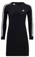 ADIDAS Originals 3-Streifen Kleid Schwarz Midi Halbarm Trikot Damen UK10 S Neu