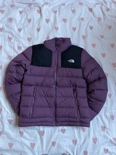THE NORTH FACE DOWN AND FEATHER JACKET SIZE S IN A PALE AUBERGINE/PLUM SHADE WITH TWO OUTTER POCKETS WITH ZIPS AND ONE INNER,DRAWSTRINGS IN VERY GOOD CONDITION,NO HOLES OR MARKS ETC,FROM A SMOKE FREE HOME SIZE S, PIT-PIT 18.5 INCHES, LENGHT 24 INCHES PLEASE MEASURE AND COMPARE TO. SIMILAR FITTING JACKET MACHINE WASHABLE ANY QUESTIONS WELCOME