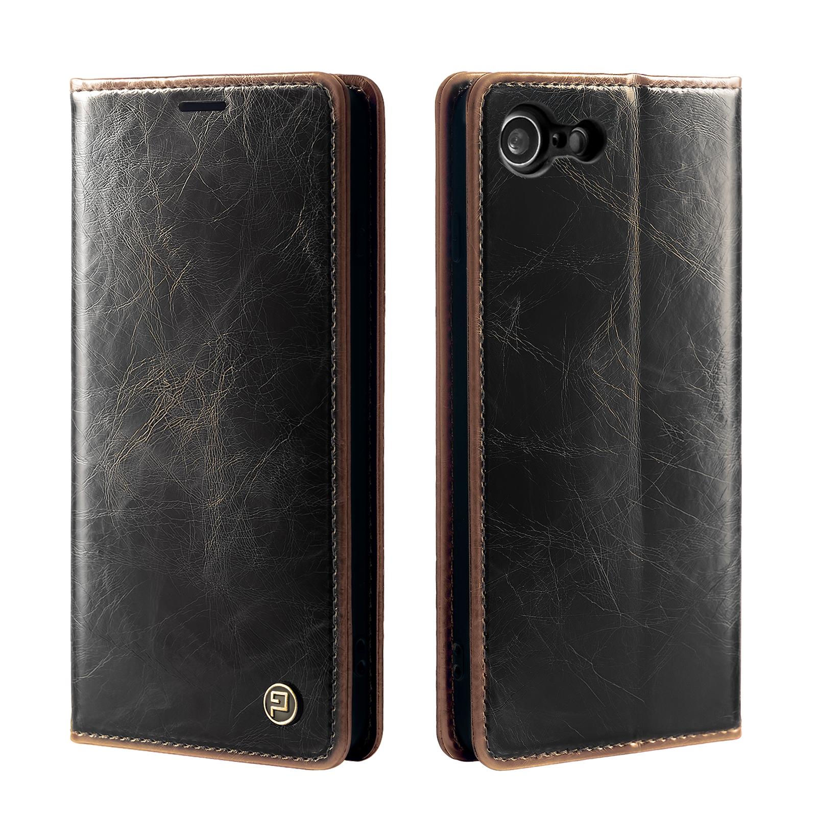 Hochwertige Klapphülle im Vintage-Look für iPhone Modelle - Exakte Passgenauigkeit durch verstärkte Kunststoffschale (Schwarz) - Integrierte RFID Schutzschicht - Smartes Design mit Geldfach und zwei Kartenfächern - Praktische Smartstand-Funktion - Schneller Blitzversand und engagierter Kundendienst an 7 Tagen die Woche!.
