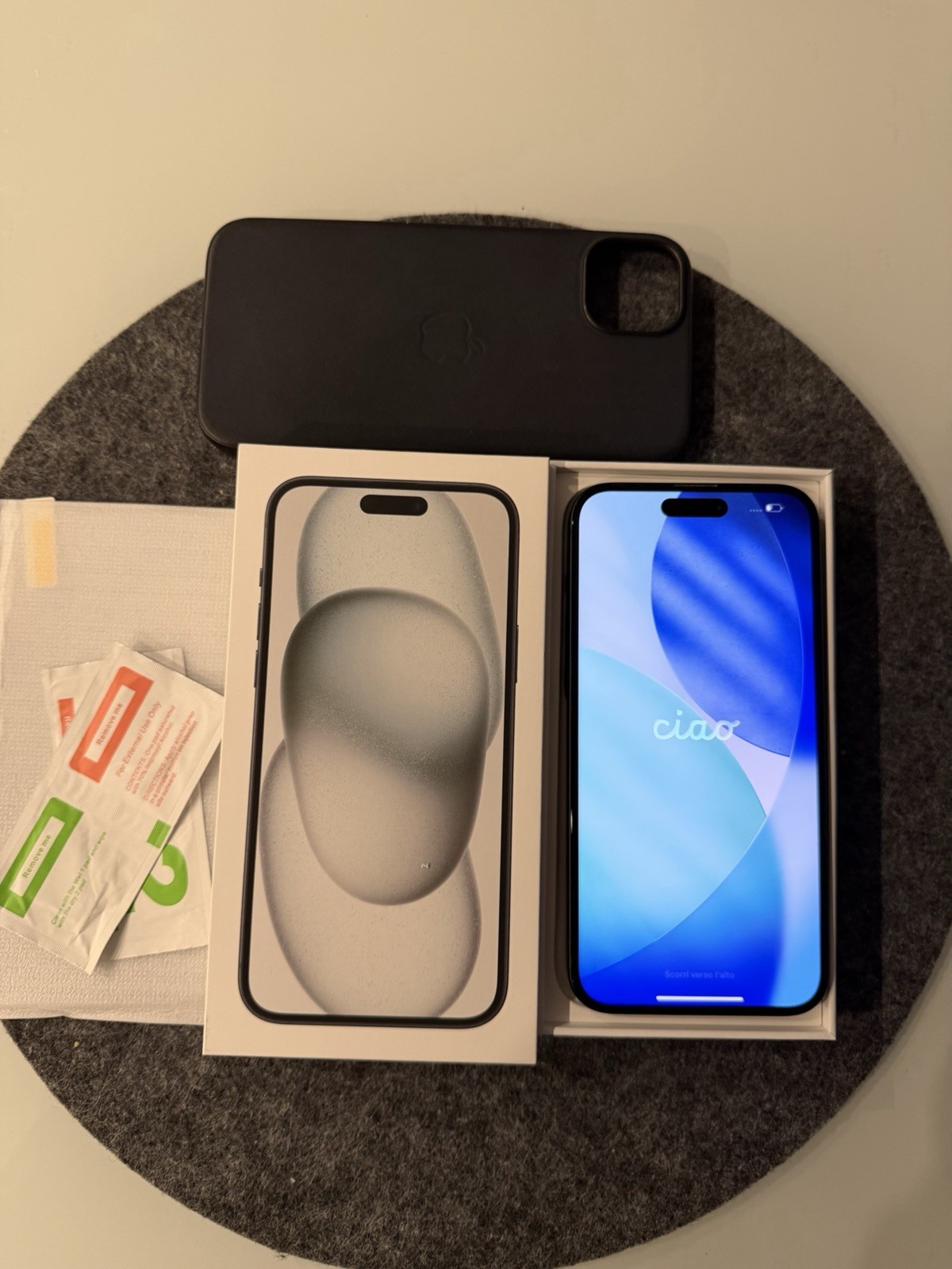 Apple IPhone 15 Plus 128GB in schwarz. Batteriezustand maximale Kapazität 86%. Das IPhone ist von April 2024 (siehe Lieferschein) und hat keine Kratzer oder Beschädigungen., quasi optisch wie neu! Wer mag bekommt für 8€ extra eine passende Apple Hülle samt schwarz und eine Panzerfolie dazu. Fragen beantworte ich gerne nach bestem Wissen und Gewissen. Das IPhone ist in Originalverpackung ohne Ladekabel. Kann nach Terminabsprache besichtigt werden. Privatverkauf-kein Umtausch oder Garantie. Verkauf nur mit Abholung