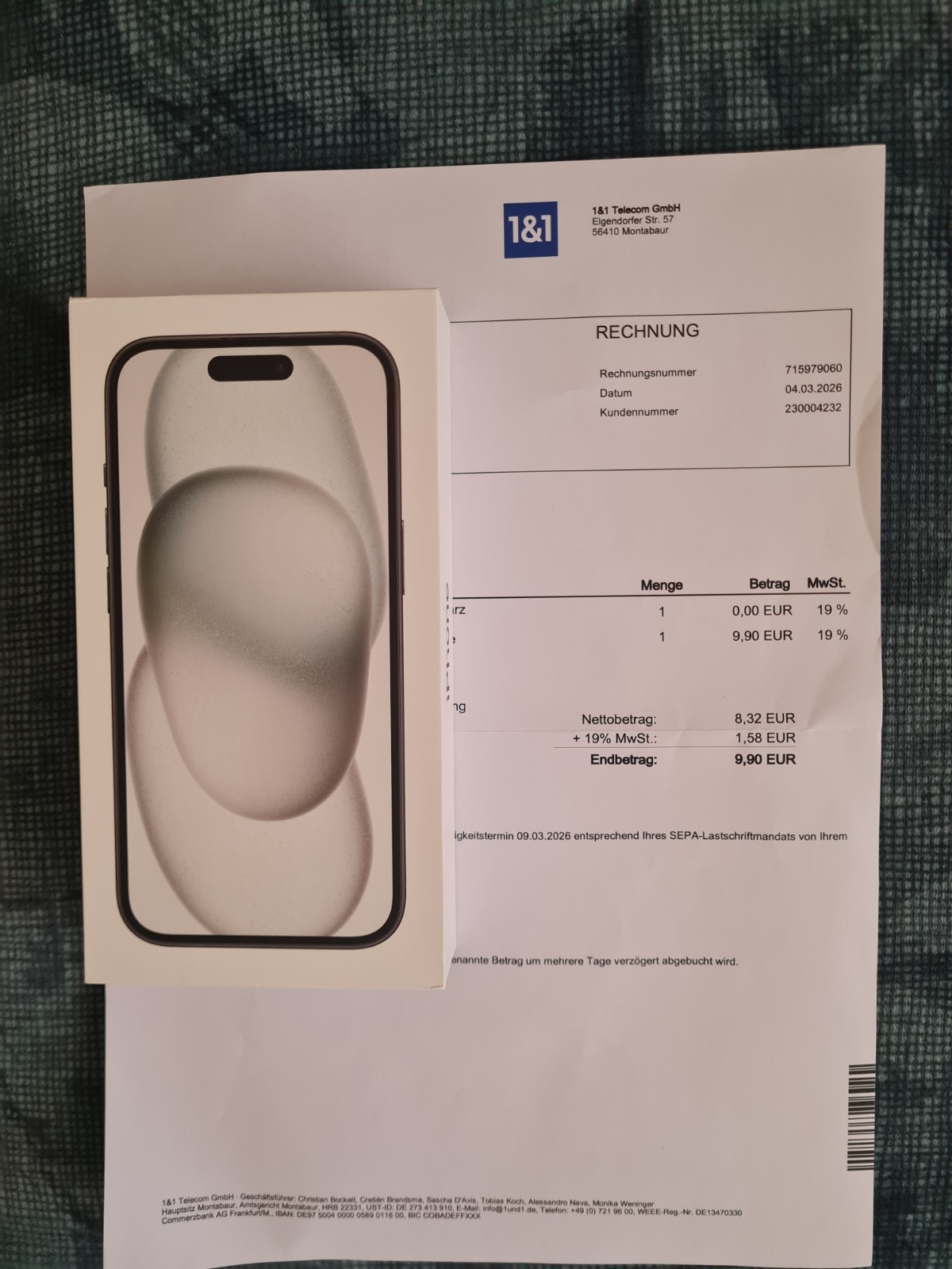Neues noch versiegeltes iPhone 15 mit 256GB in Schwarz mit Rechnung vom 04.03.2026 !