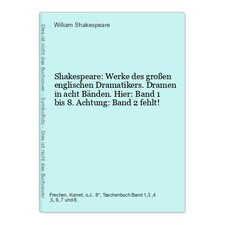 Shakespeare Dramen in 8 Bänden im praktischen Kartonschuber Die Bücher sind nicht beschriftet signiert personalisiert und kein Exlibris. Schuber unten links eingerissen. Zustand siehe Bilder. Nur bieten wenn Sie damit einverstanden sind. Das ist ein Privatverkauf. Keine Rücknahme oder Haftung. Viel Erfolg beim ersteigern.