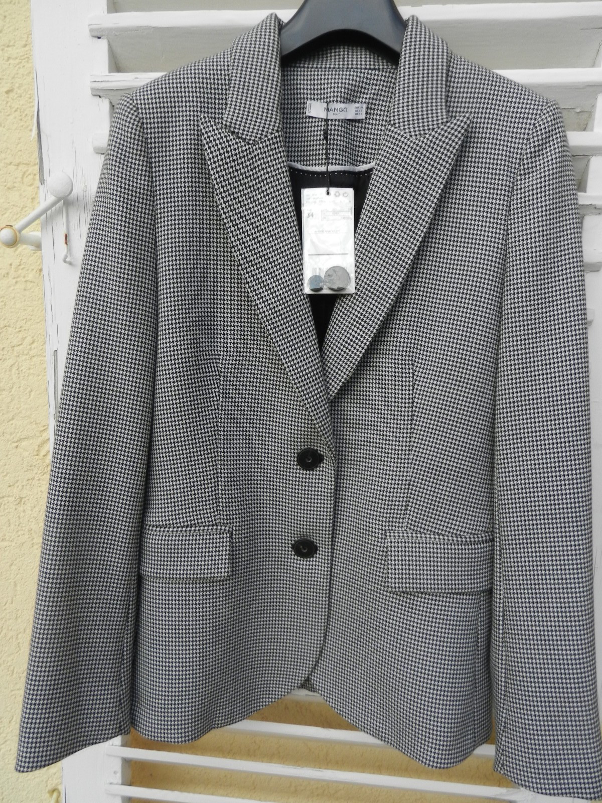 NEU MANGO femininer Blazer Schwarz Weiß 34 XS Business Hahnentritt Karo elegant