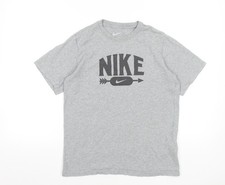 NIKE Herren T-Shirt Grau Gr. 48/M Sportlich Basic Logo-Print Baumwolle. Stil: Sportlich; Casual; Basic. Abteilung: Herren. Material: Baumwolle. Farbe: Grau. Außenmaterial: Baumwolle. Marke: Nike.