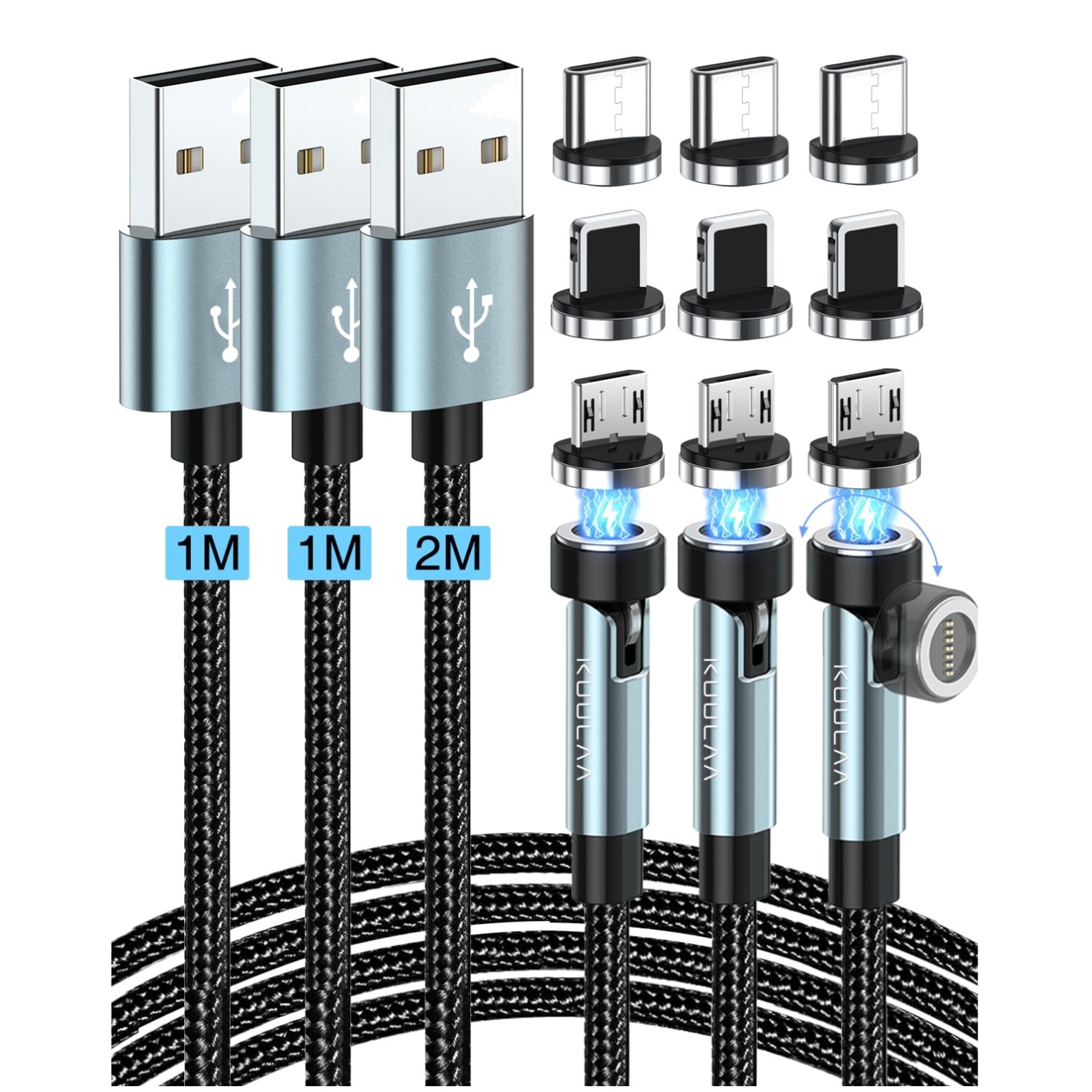3 in 1 Magnetisches Ladekabel, 360°&180° mit 3A Schnelllade & Datenübertragung für Micro USB/Typ C/iProducts/Huawei. 【Magnetisches USB-Kabel】 Das magnetische Ladekabel hat einen starken Magnetismus, der ausreicht, um das Gewicht eines Smarts zu tragen und zu verhindern, dass das Gerät herunterfällt und verloren geht.