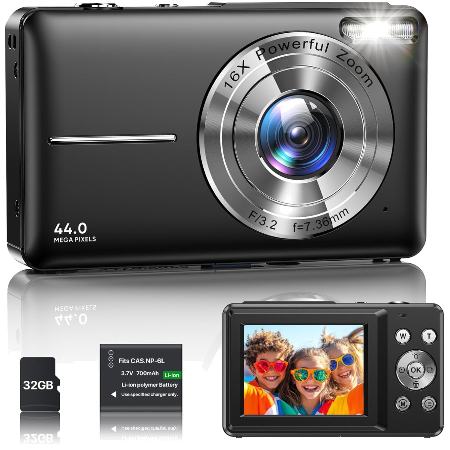 Digitalkamera 1080P Fotokamera 44MP Kamera Fotoapparat Tragbare Kompaktkamera...