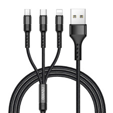 🔌 3-in-1 Ladekabel von RAVIAD ✔ USB-C, Micro-USB & Lightning ✔ Schnellladen ⚡ | 1,2 m Länge ✔ Robustes Nylon 💪 ✔ Für iPhone, Android & mehr! .