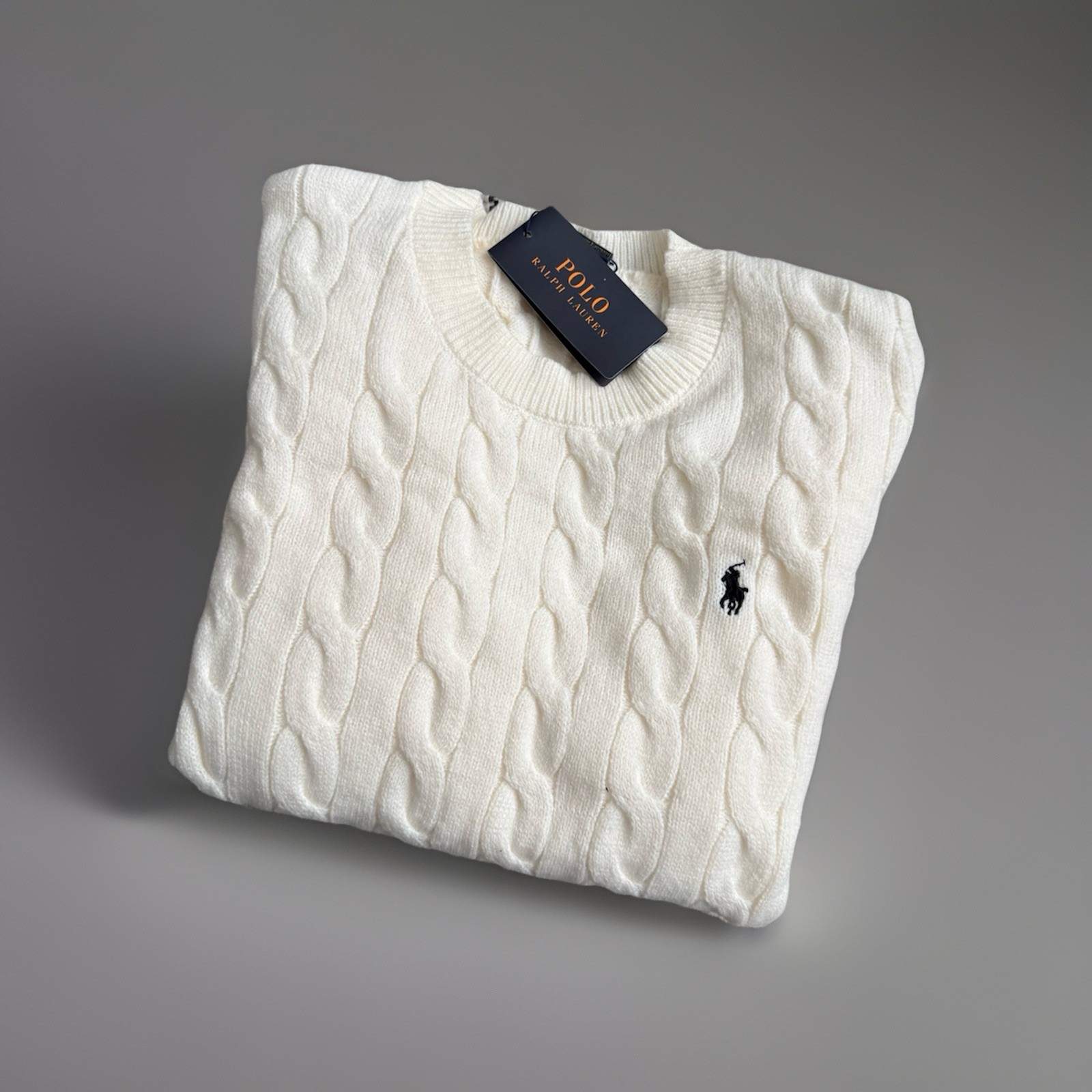 Eleganz trifft Komfort mit diesem exklusiven lauren Herrenpullover in Größe XL. Dieses hochwertige Kleidungsstück in einem ansprechenden Cream weiß ist ideal für die kühleren Tage der Jahreszeit. Der klassische Rundhalsausschnitt und die langen Ärmel sorgen für eine zeitlose Silhouette, während das feine Strickmuster und das dezente Logo für einen raffinierten Touch sorgen. Mit einem angenehmen Zopfmuster.