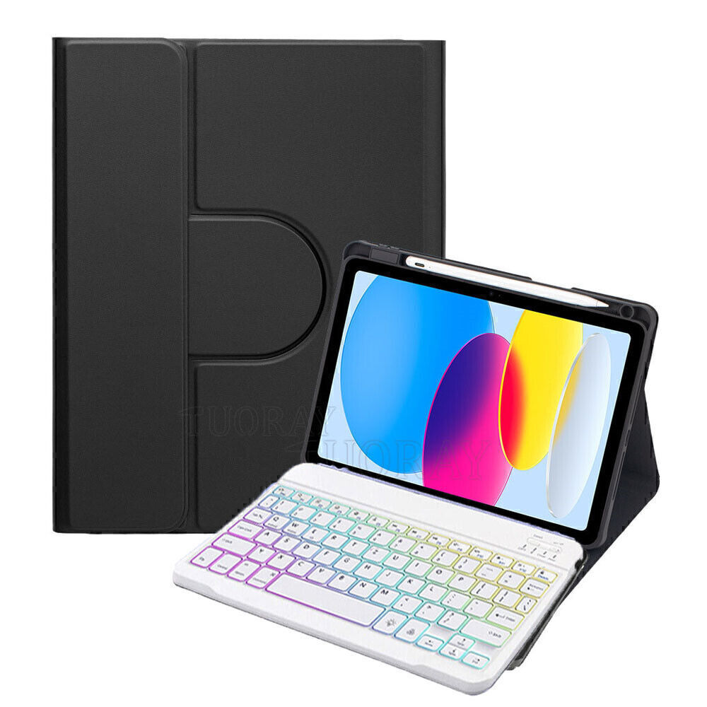 QWERTZ Beleuchtete Tastatur mit 360° Hülle für iPad 10/9/8/7. Gen Air 5 6 Pro 11