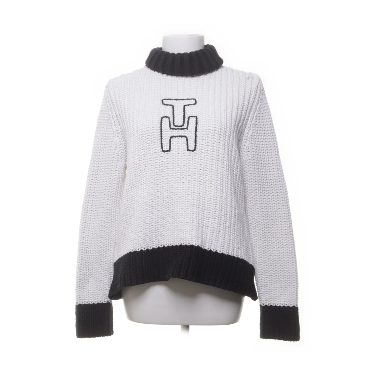 Tommy Hilfiger, Rollkragenpullover, Größe: M, Weiß/Schwarz, Acryl/Baumwolle #tTT
