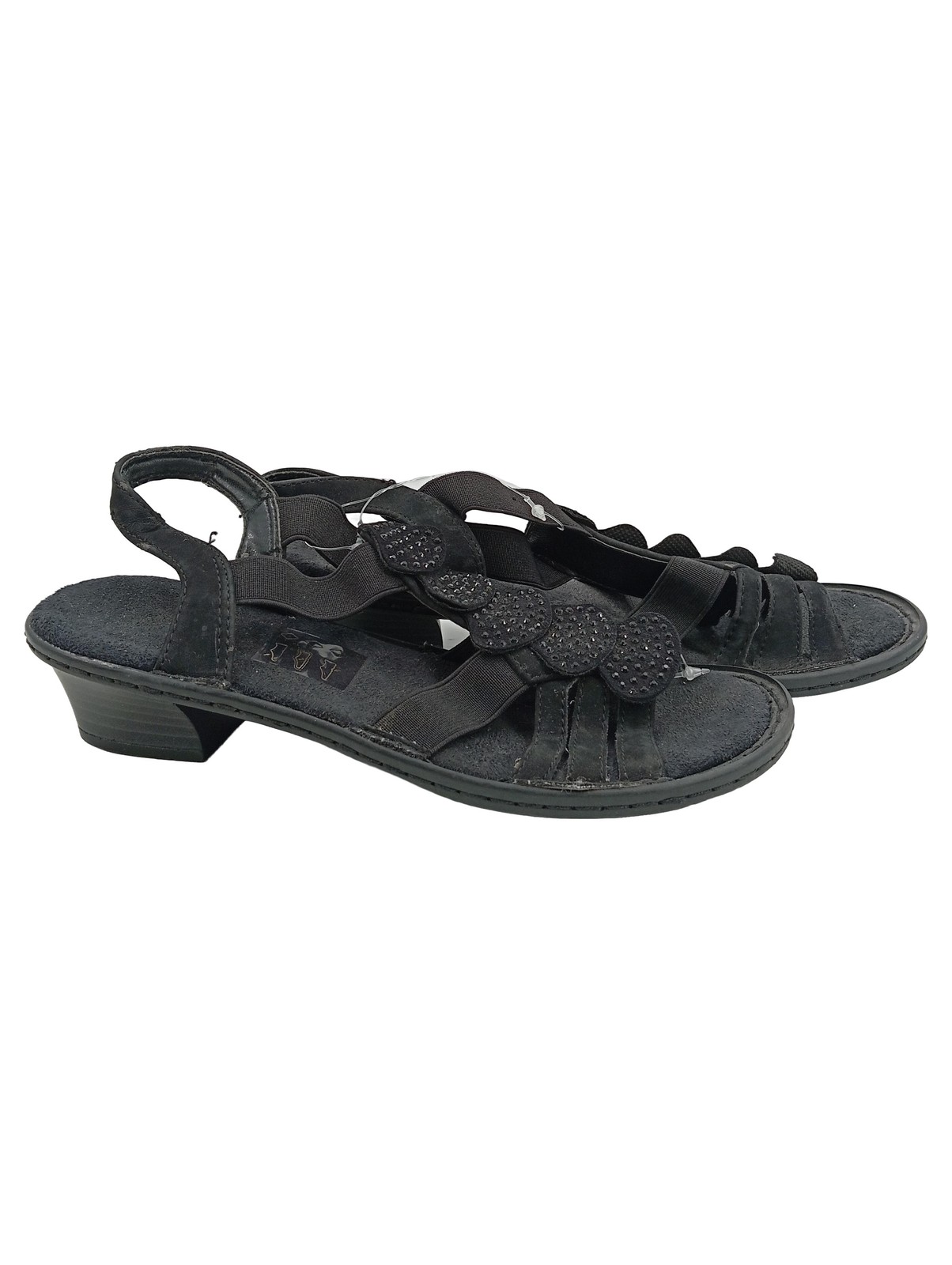 Rieker Damen Sandalen Gr. 36 Schwarz Komfortabel Strass Sandalette