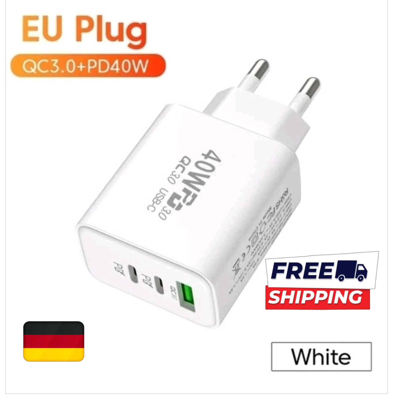 3-fach Schnell Ladegerät 40W Netzteil 2x USB-C + 1x USB Charger Mehrfach Stecker