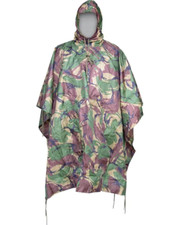Available in trusty Olive Green, Woodland DPM Camo or Kombat UK's British Terrain Pattern (BTP). British Army D P M Camo Poncho. A simple, lightweight US style poncho, this practical addition to your kit will ensure that you can keep going whatever the weather.