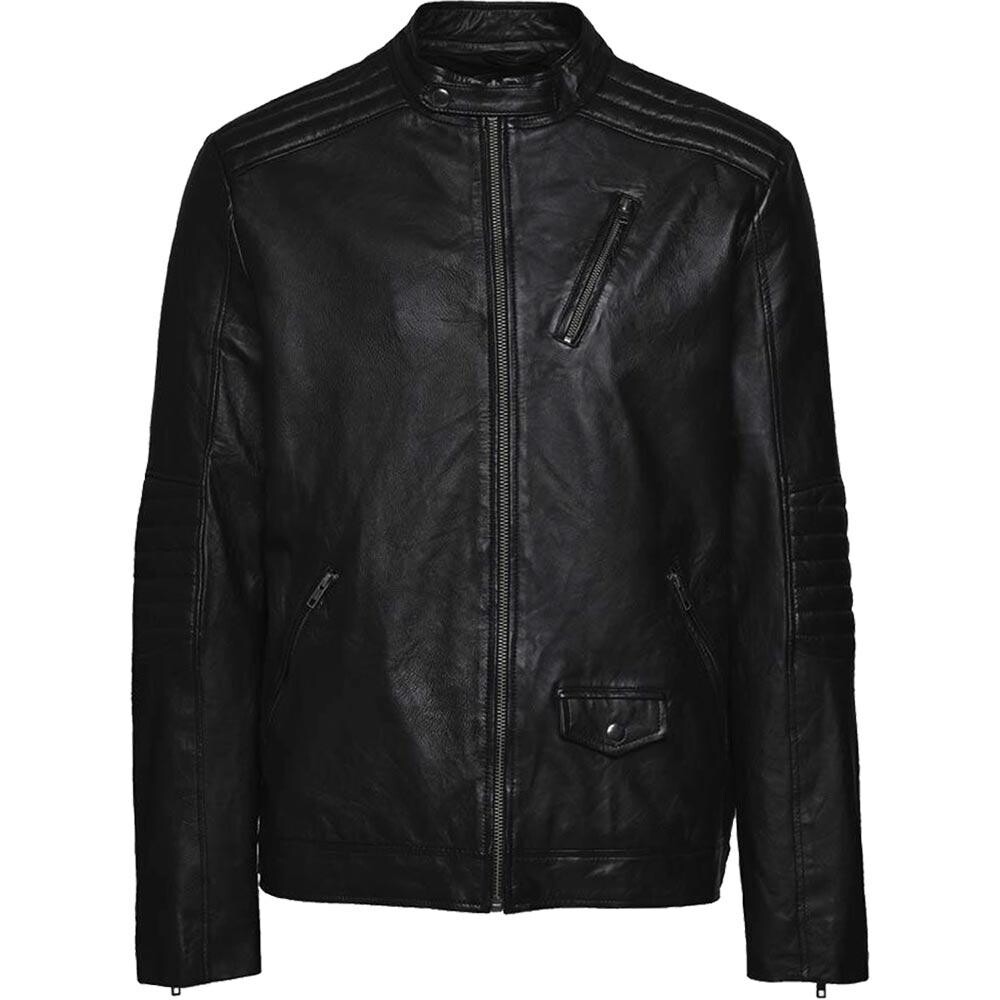 Eine Lederjacke ist ein zeitloses Kleidungsstück, das jedem Outfit einen Hauch von Coolness verleiht. Sie hat einen Reißverschluss, der bis zum Stehkragen reicht, und einen klassischen Bikerlook. Obermaterial: 100% Lammleder, Futter: 100% Baumwolle.