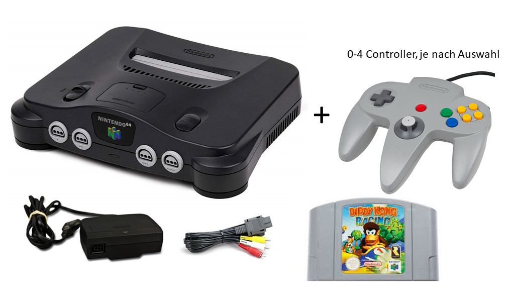 Nintendo 64 Konsole mit Jumper Pak (außer bei der Option "mit Exp. Die Spieloptionen "1 zufälliges Spiel", "3, 5 oder 10 zufällige Spiele" sind zufällig von uns ausgewählte Spiele und nicht frei wählbar. ).