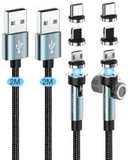 Kuulaa Magnetisches Ladekabel - 3 in 1 Magnet Ladekabel [2Stück, 2M+2M], 360°&180° Ladekabel Magnetisch, 3A Schnelllade & Datenübertragungs Magnetkabel für Typ CMicro USBi-Products. Das Ladekabel findet automatisch den magnetischen Steckeradapter.