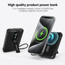 Mini 10000mAh Wireless Magnetic Power Bank for iPhone Fast Charger Battery Pack Description: Magnetic Wireless Charger Power Bank 10000mAh for iPhone 16 15 14 13 12 with Foldable Mobile Phone Holder Stand Specification: Item: Magnetic Wireless Charger Power Bank Capacity: 10000mAh Output: Wireless Output: 15W Max Material: ABS+PC Color:Black Support protocol: PPS/PD3.0,QC4.0,QC3.0,AFC,FCP,SCP,PE2.0/PE1.1 Features: .