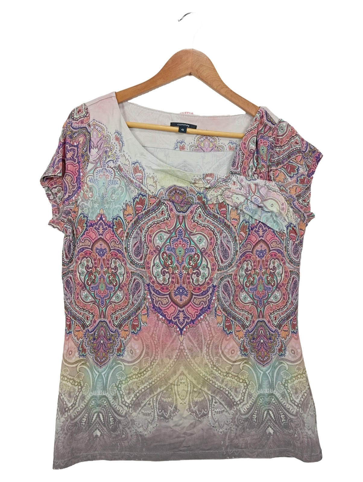 comma, Damen T-Shirt Gr. 42 XL Mehrfarbig Paisley Muster Casual
