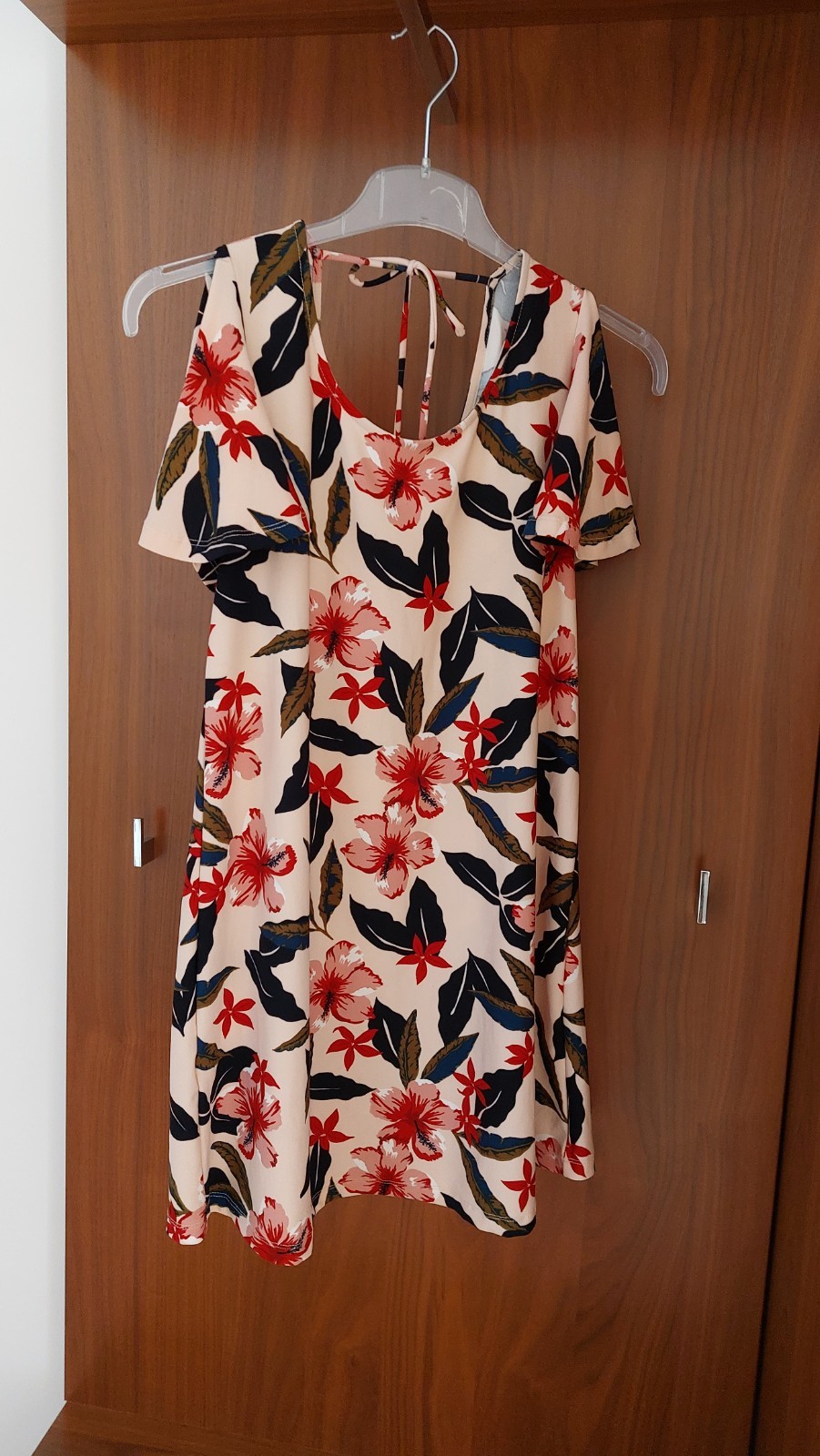 Der runde Ausschnitt unterstreicht die feminine Silhouette des Minikleides, das sich durch sein leichtes Material und pflegeleichte Eigenschaften (Maschinenwaschbarkeit) auszeichnet. Es ist eine wunderbare Ergänzung für jede Garderobe, die eine frische und leichte Ausstrahlung liebt.