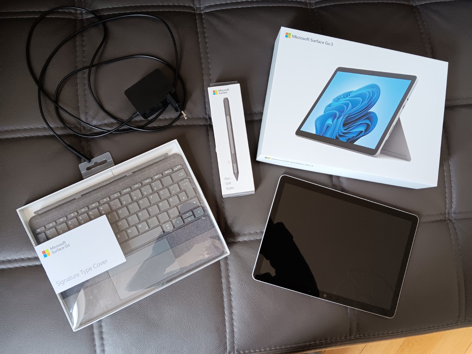 Microsoft Surface Go 3 mit 8GB + 128GB + Type Cover Tastatur + Hülle + Pen.