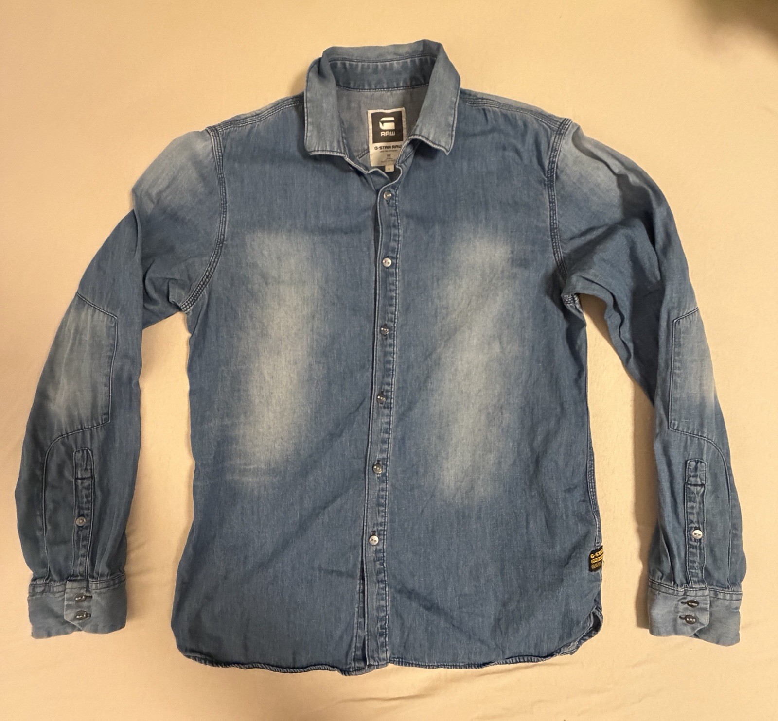 Erleben Sie stilvolle Eleganz und zeitgemäßen Komfort mit dem G-Star Raw 3301 Slim Jeanshemd in der Größe L. Dieses hochwertige, blau gefärbte Hemd ist aus reiner Baumwolle gefertigt, was es zu einer idealen Wahl für die Übergangszeit macht. Der klassische Kentkragen und die Slim-Passform unterstreichen eine schlanke Silhouette, während die langen Ärmel und das ungefütterte Design für optimalen Tragekomfort im Sommer und Herbst sorgen. Das geknöpfte Hemd zeichnet sich durch eine einfache Eleganz ohne Muster aus und lässt sich vielseitig kombinieren. Es verfügt über eine praktische Maschinenwaschbarkeit und gehört zur Grundausstattung eines jeden modebewussten Herren. Mit seinem robusten Denim-Stoff verspricht dieses Hemd der Marke G-Star Raw Langlebigkeit und Formbeständigkeit.