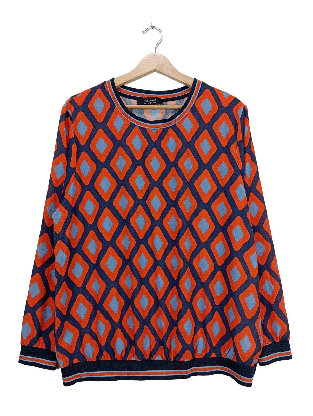 44 blau-rot Casual-Look | Mädchenflohmarkt. 44 blau-rot Casual-Look. Aniston Langarm-Bluse, blau-rot Allover-Druck. Rundhalsausschnitt, Armbündchen, Allover-Druck, Casual-Look, schlichter Stil. Marke Aniston.