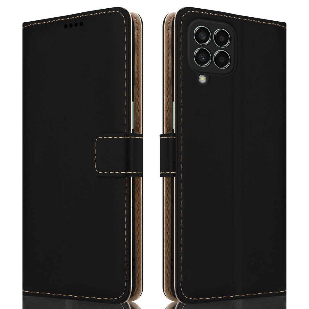 HSP Handy Hülle für Samsung Galaxy M53 5G | Schwarz Flip Case Klappetui Leder