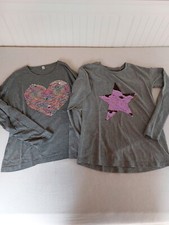 Langarm Shirt mit Wende Pailletten von Mango Grau Gr. 152 Top Zustand